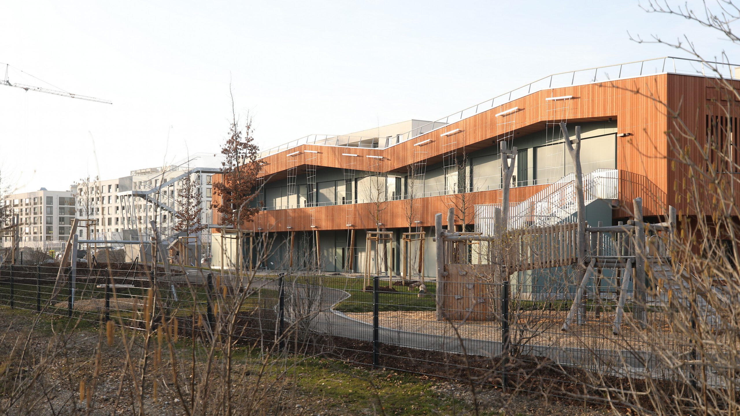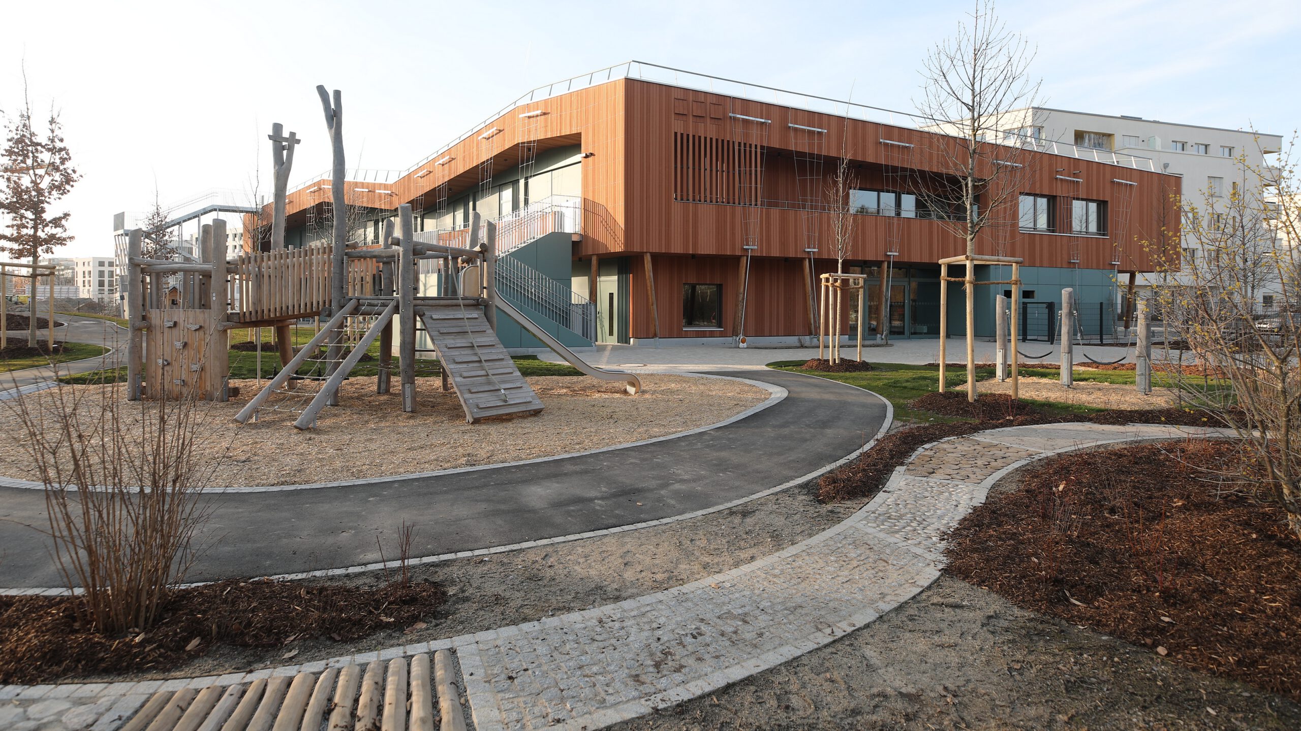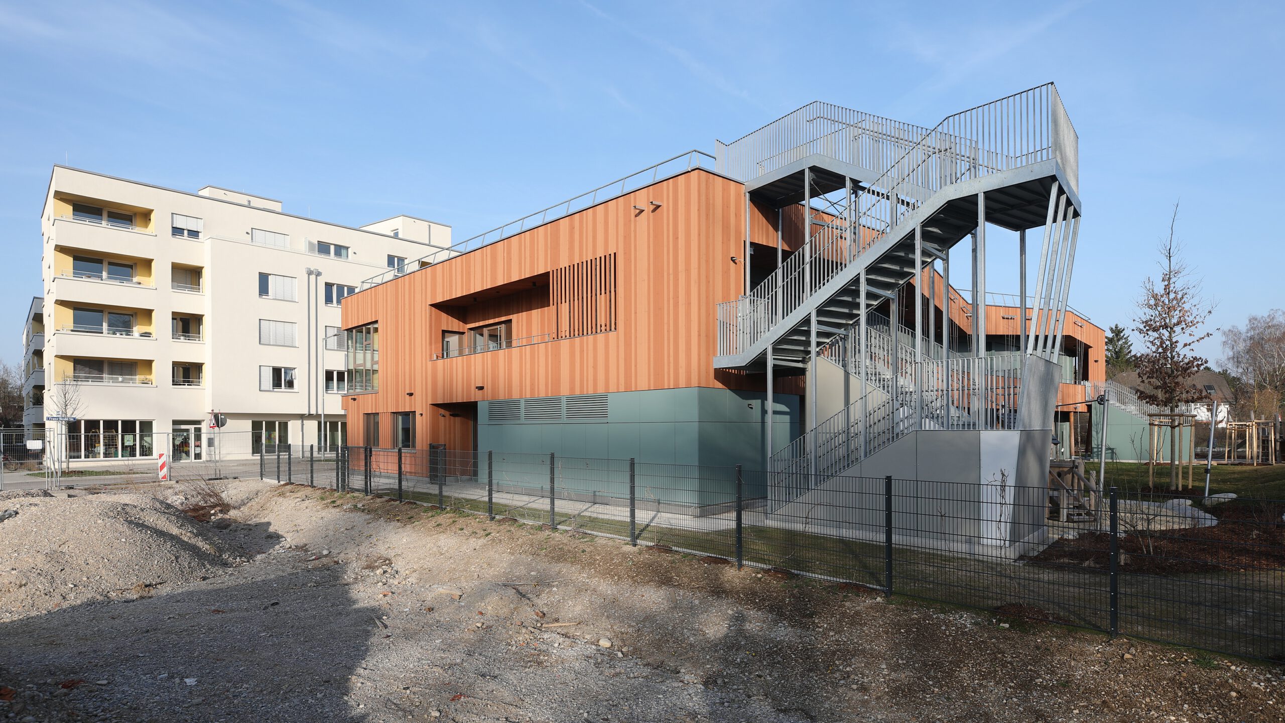 Zu viel Beton haben andere! Beim Kindergarten in der Franz-Heubl-Straße 4 (Alexisquartier) setzt das Baureferat der Stadt München auf natürliche Baustoffe. Neben der hohen Ästhetik bieten die Lehmwände und Holzdecken ein gesundes Umfeld für die betreuten Kinder und auch das Personal. Zudem liegt der Truderinger Wald weniger als einen Steinwurf entfernt, sodass die Kinder auch viel Zeit mit Waldausflügen verbringen werden. Einen eigenen, großzügigen Garten besitzt das Haus aber natürlich auch. Inzwischen steht der Betreiber fest, es ist die „Rasselbande München GmbH“.