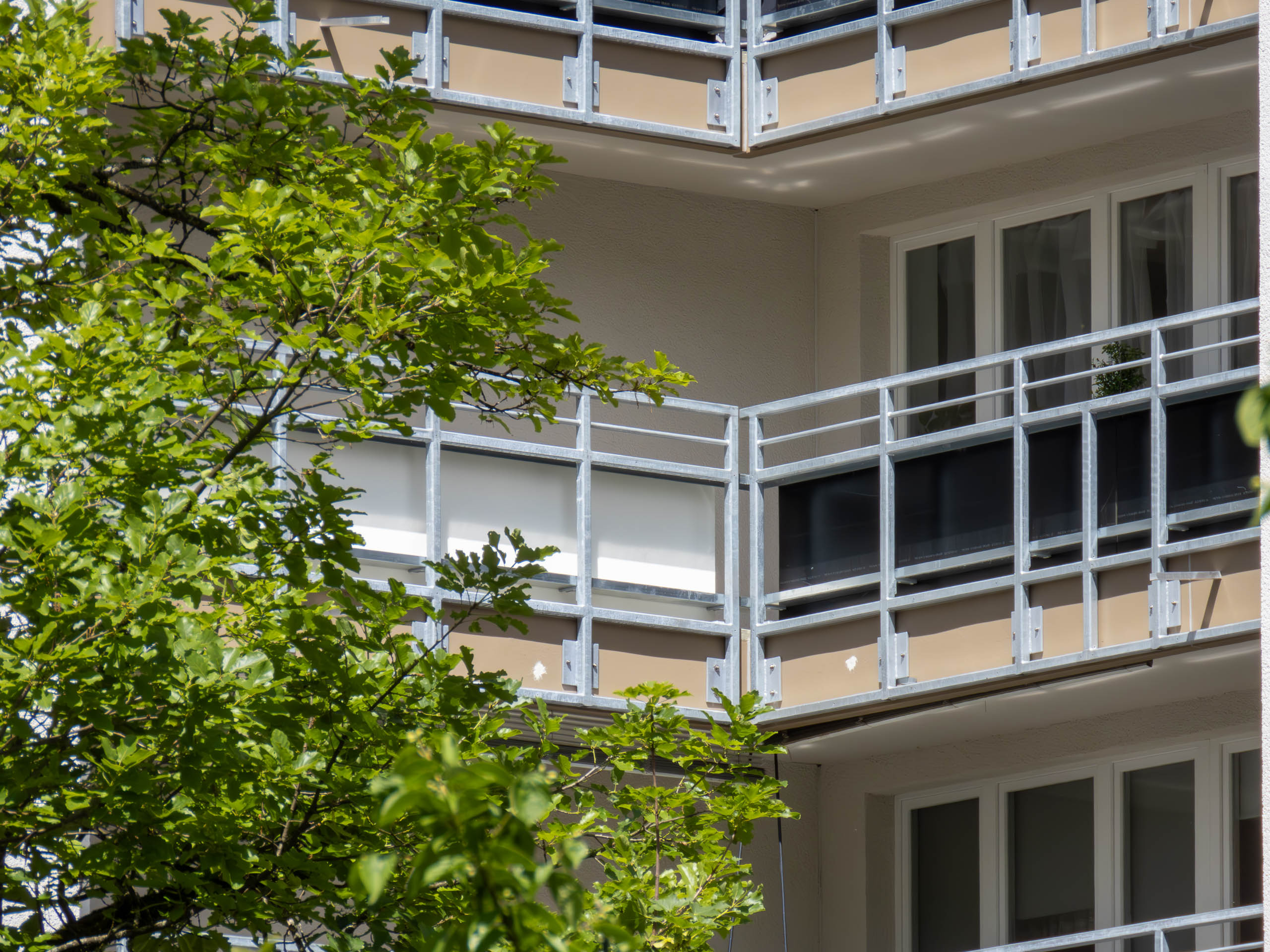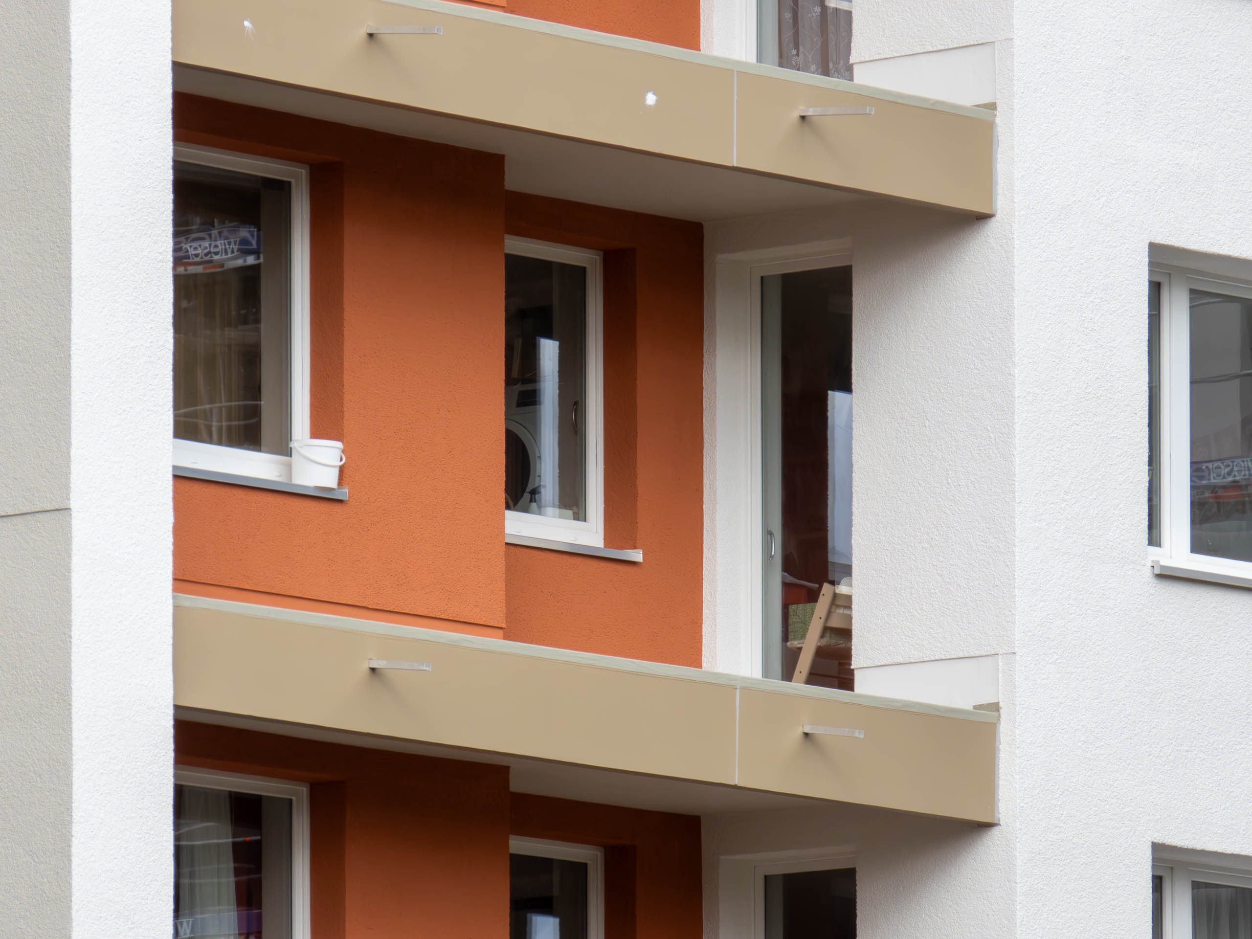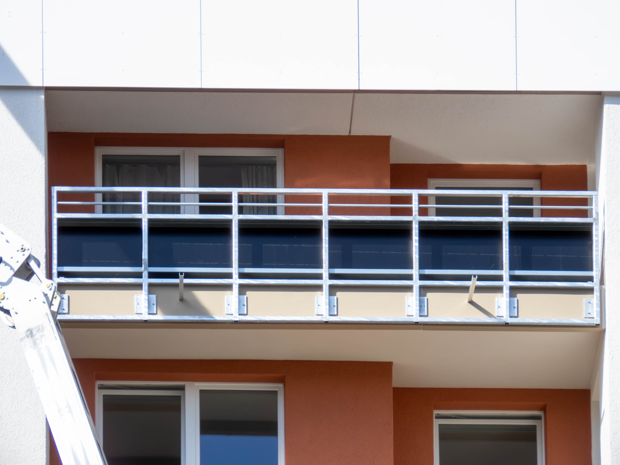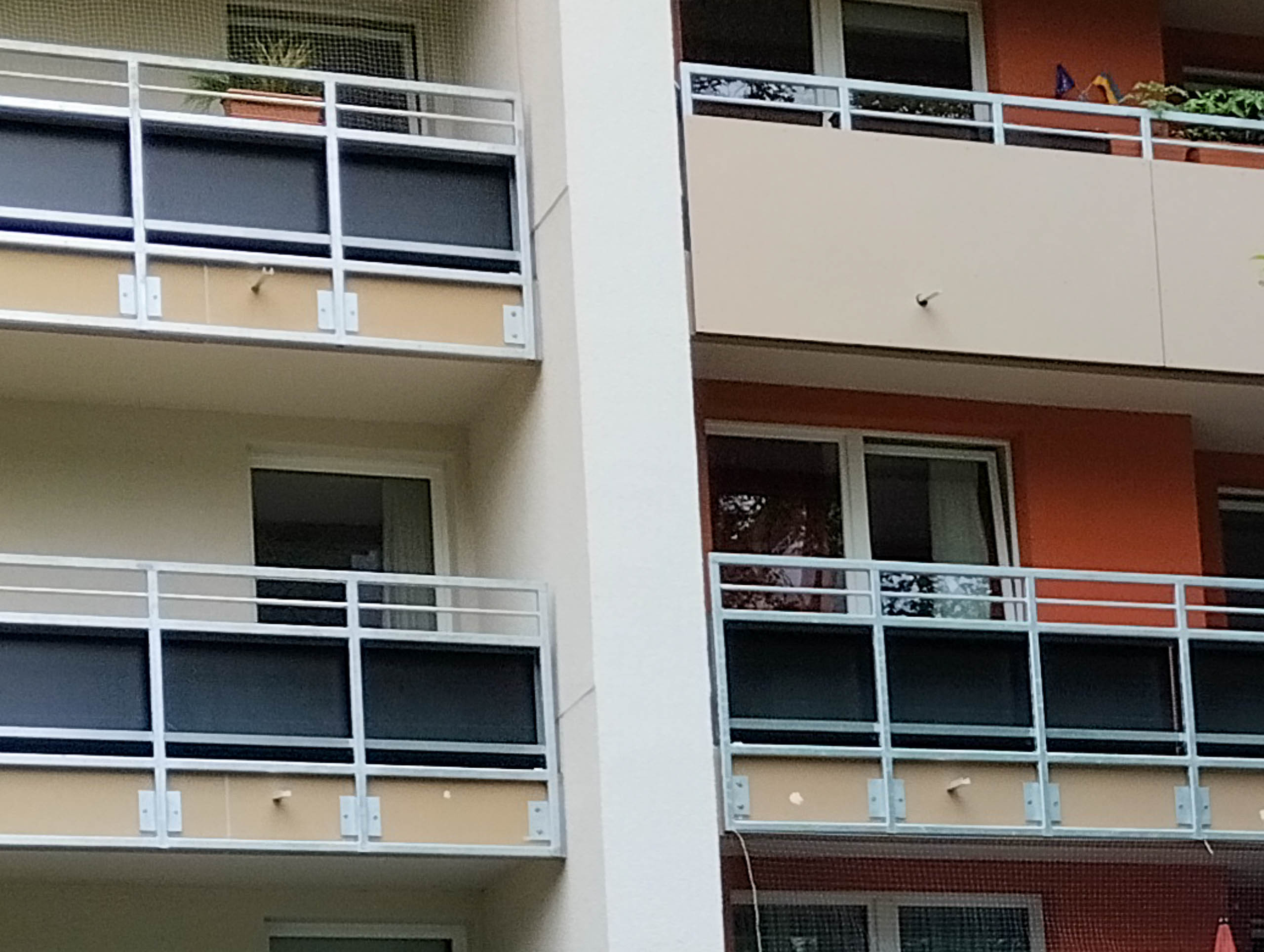 An den Balkonen werden Instandsetzungsarbeiten und eine Betonsanierung durchgeführt. Die bestehenden Brüstungen und Blumenkästen aus Beton werden rückgebaut. Als Ersatz kommt ein Geländer aus Stahl.