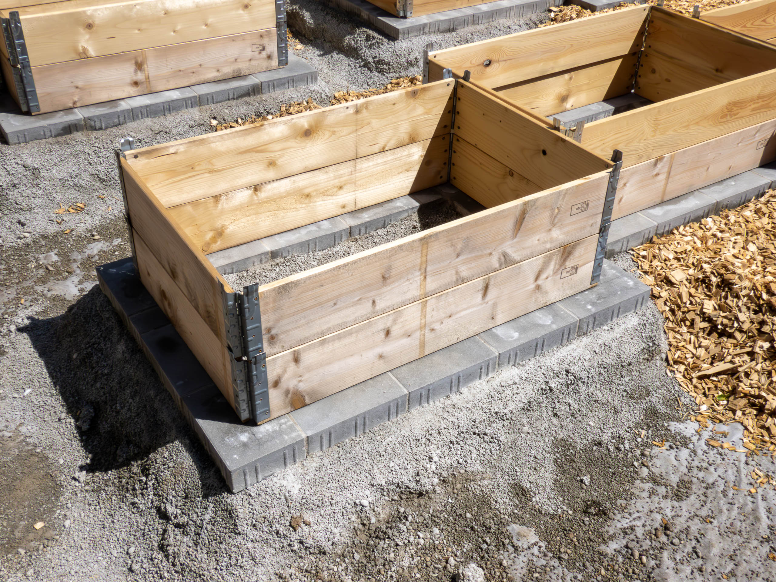 Für die Bewohner werden Hochbeete vorbereitet.
