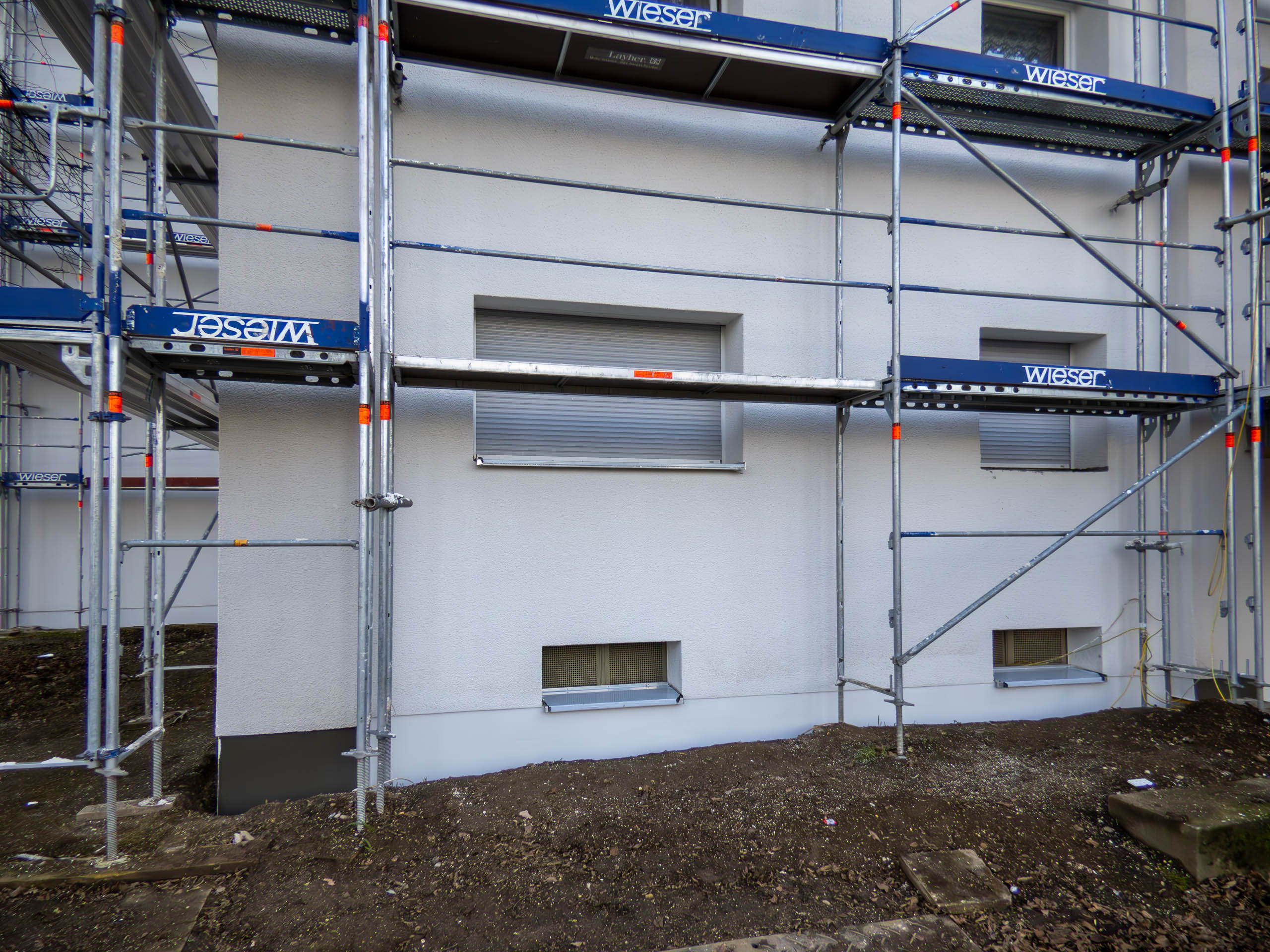 Die Fassade wird wärmegedämmt und neu gestrichen.