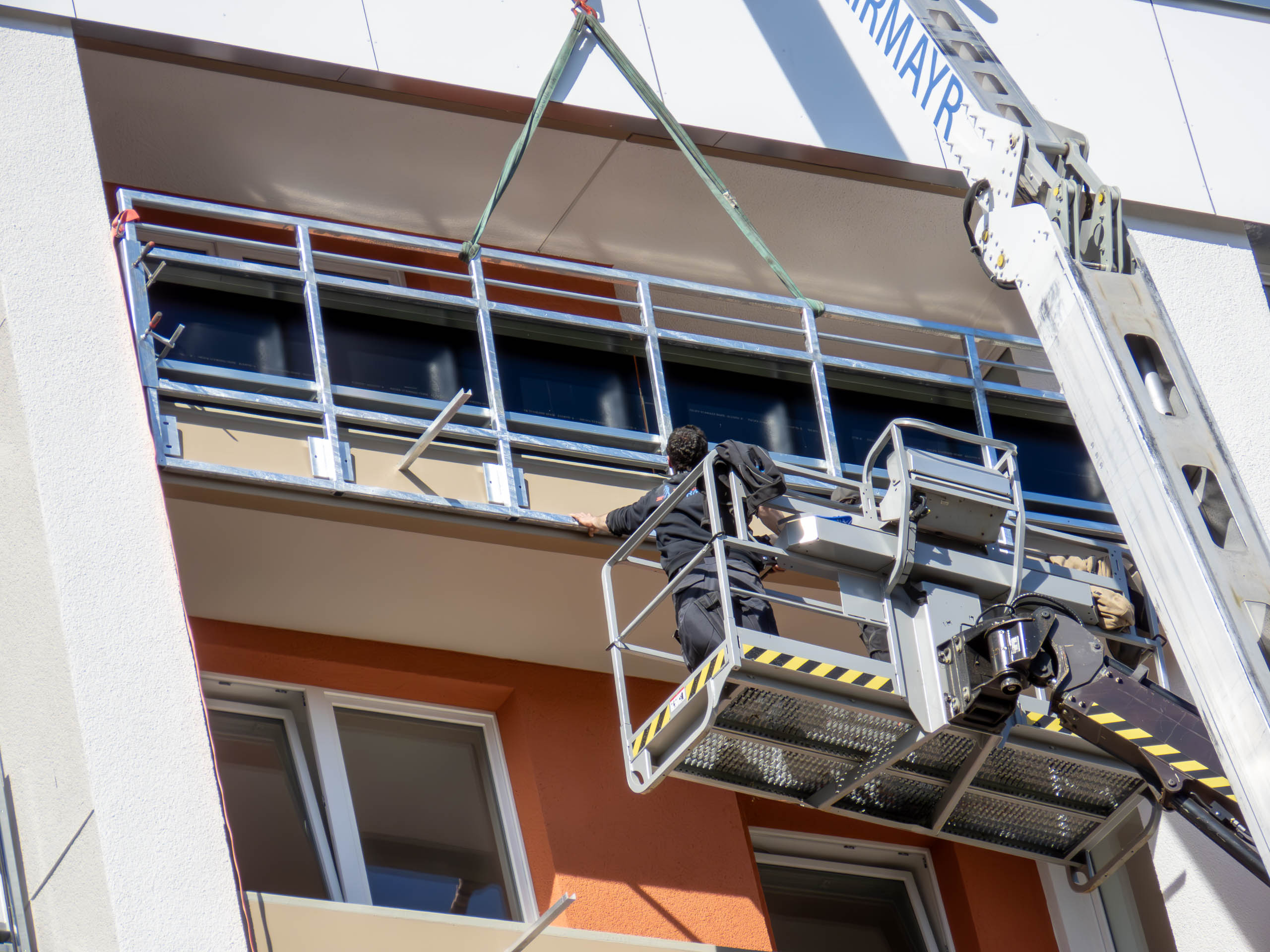 Heute wurde damit begonnen, die Balkongeländer zu montieren. Nach fertiger Assemblierung und anschließender Freigabe durch die Gewofag können die Balkone dann endlich wieder genutzt werden. Das Design wird wohl kaum so in Schwarz bleiben. Auf dem Geländer sind Produktaufdrucke zu sehen, da wird vermutlich noch eine zweite Platte draufmontiert. Wir dürfen auf das endgültige Aussehen gespannt sein.