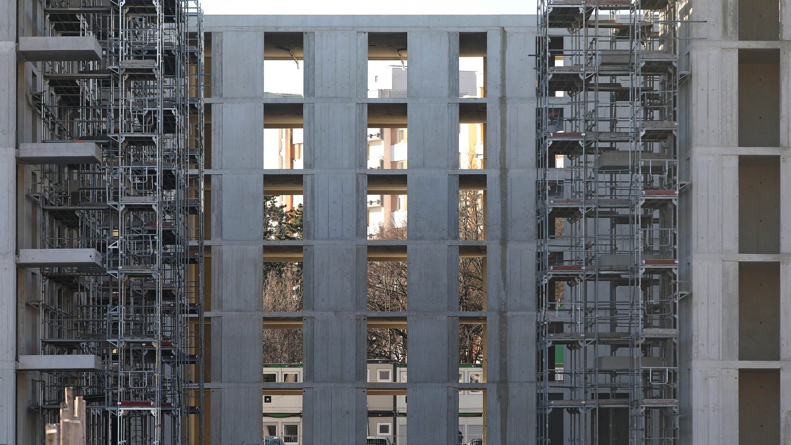 Man könnte meinen, die Häuser würden gerade abgerissen. Tatsächlich werden derzeit die Balkone abgesägt. Aber nicht nur das: Durch eine Fassadenbegradigung sollen auch die Küchen größer werden. Das bedeutet später einen höheren Wohnwert.
