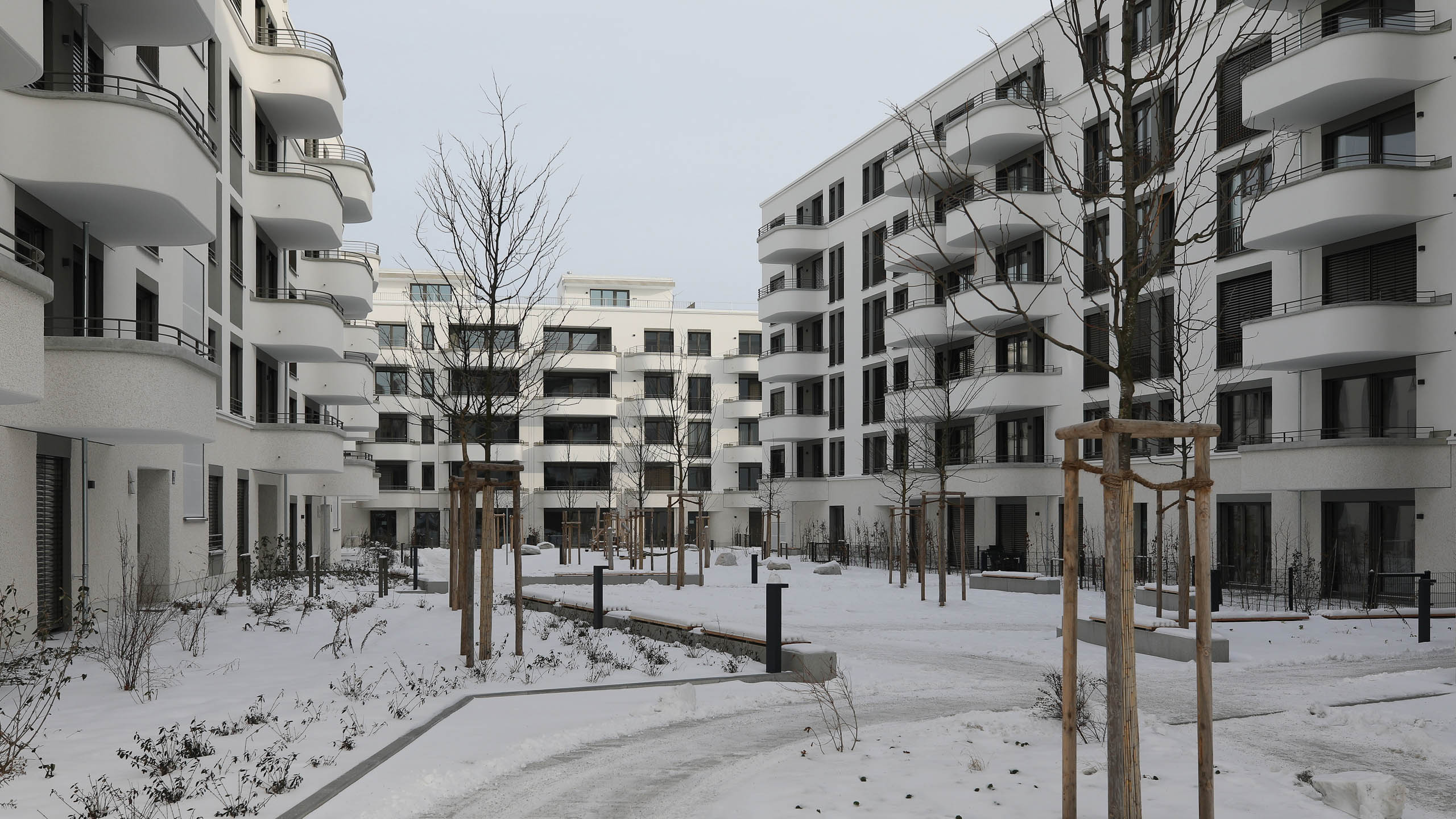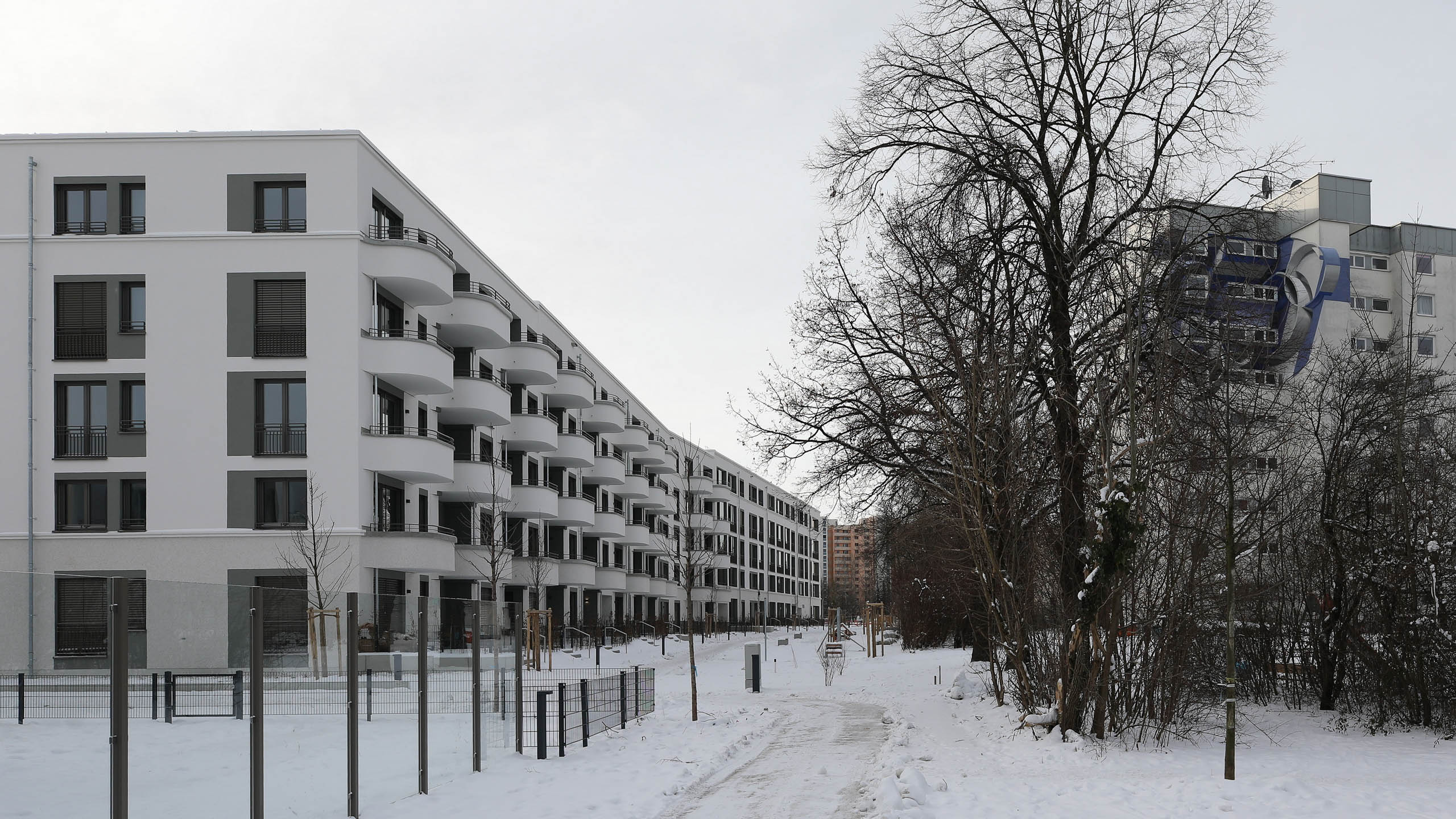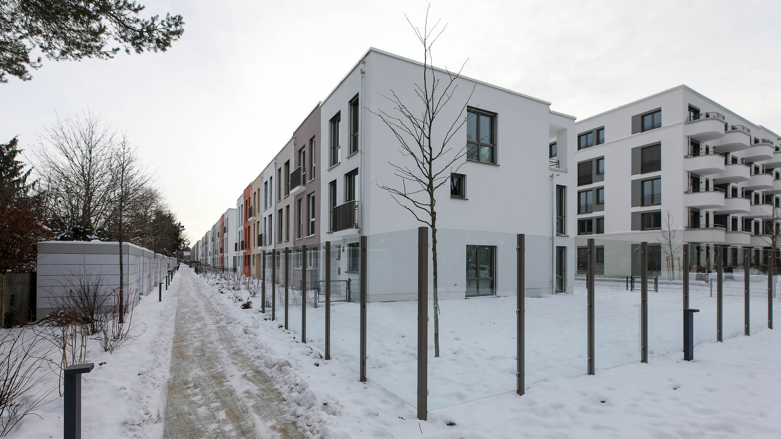 Bild E: Zwischen Sudermann-Zentrum und Oskar-Maria-Graf-Ring, rechts Wohnzimmerseite der Variante von Typ N. 5, die auf Bild D rechts sichtbar ist.