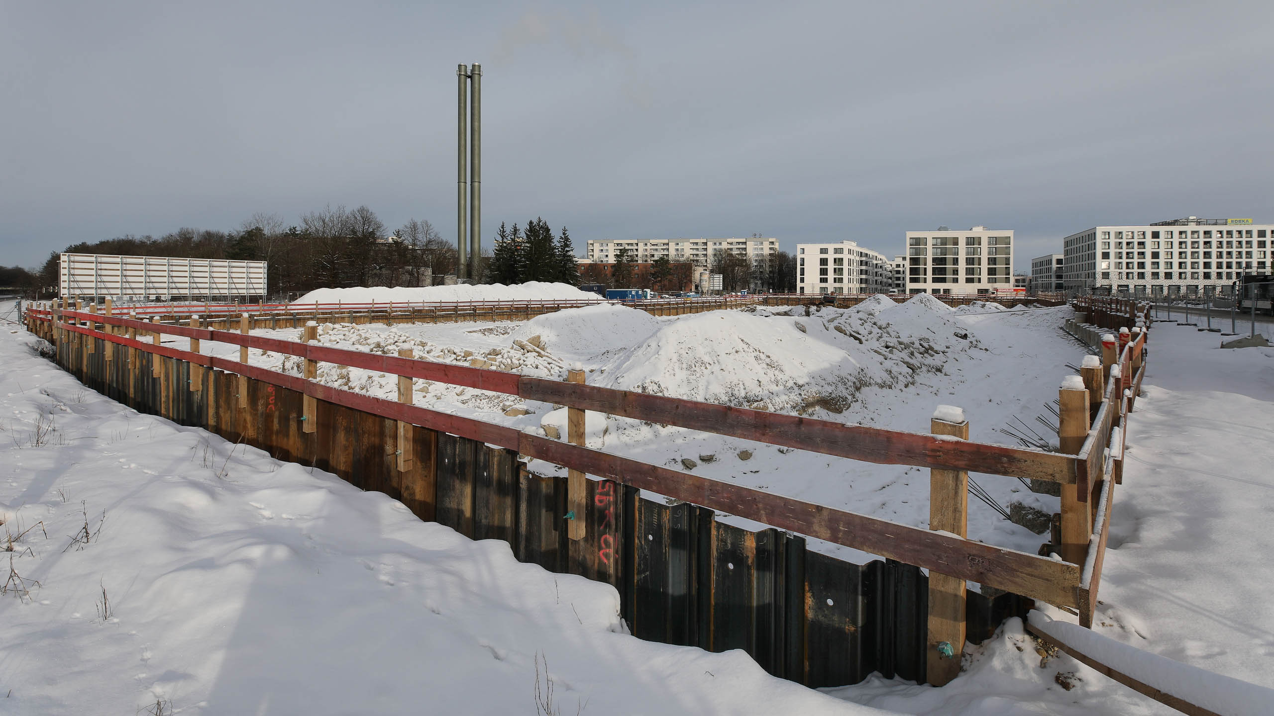 Der Bericht hier soll sich auf das Thema Pfähle konzentrieren. Über den weiteren Fortgang der Pandion-Verde-Wohnhäuser informiert der allgemeine Artikel zum Alexisquartier.