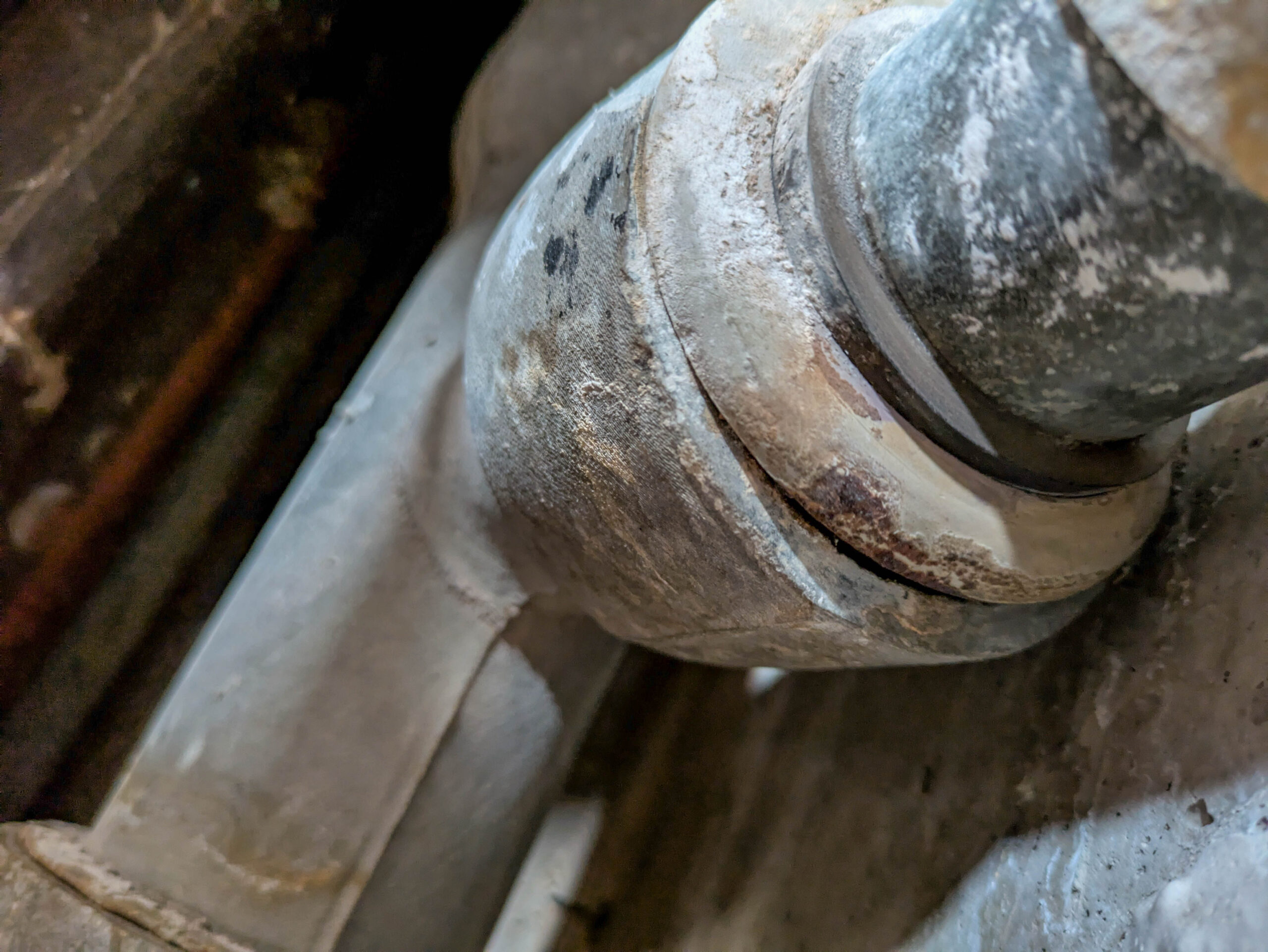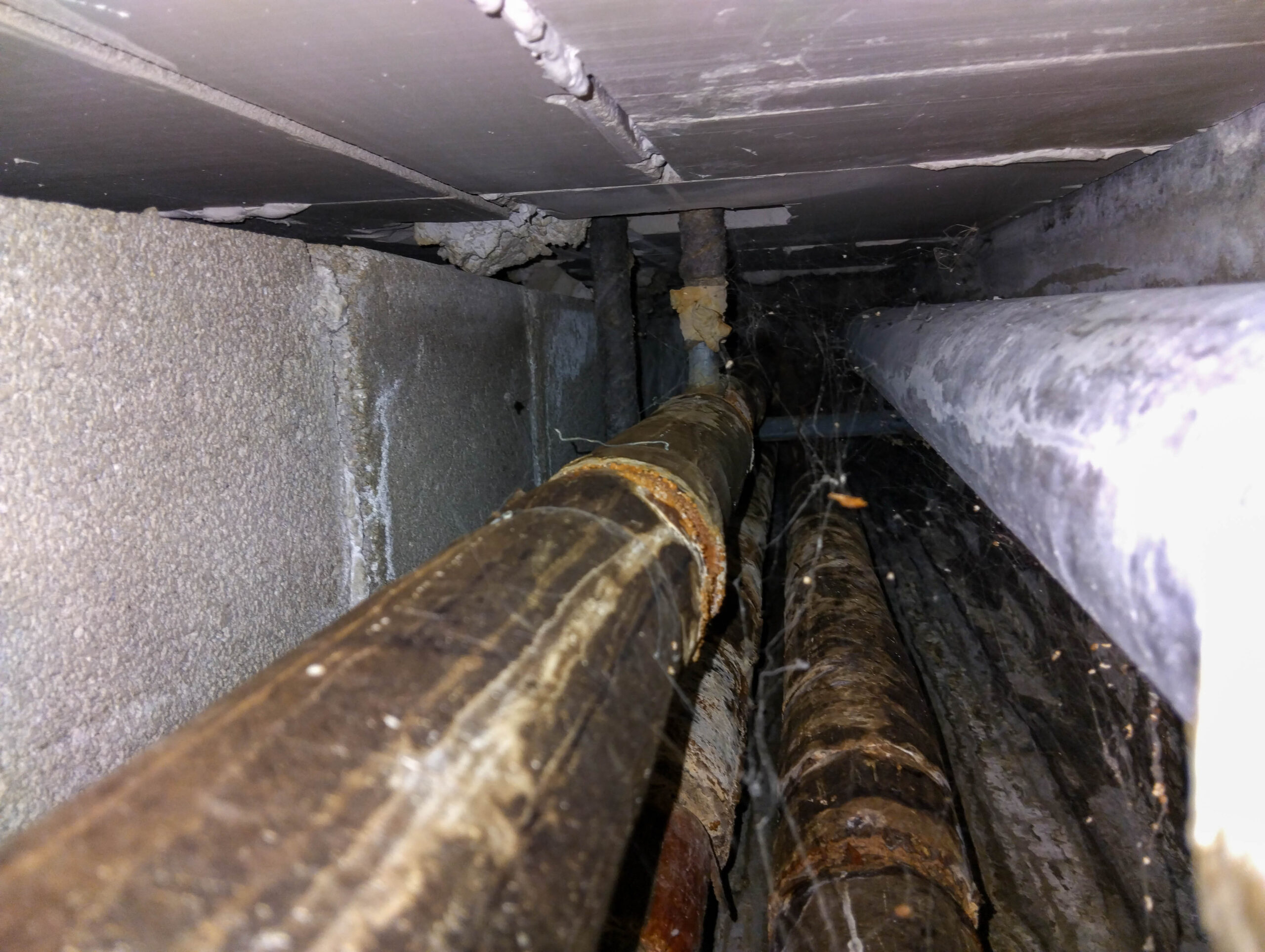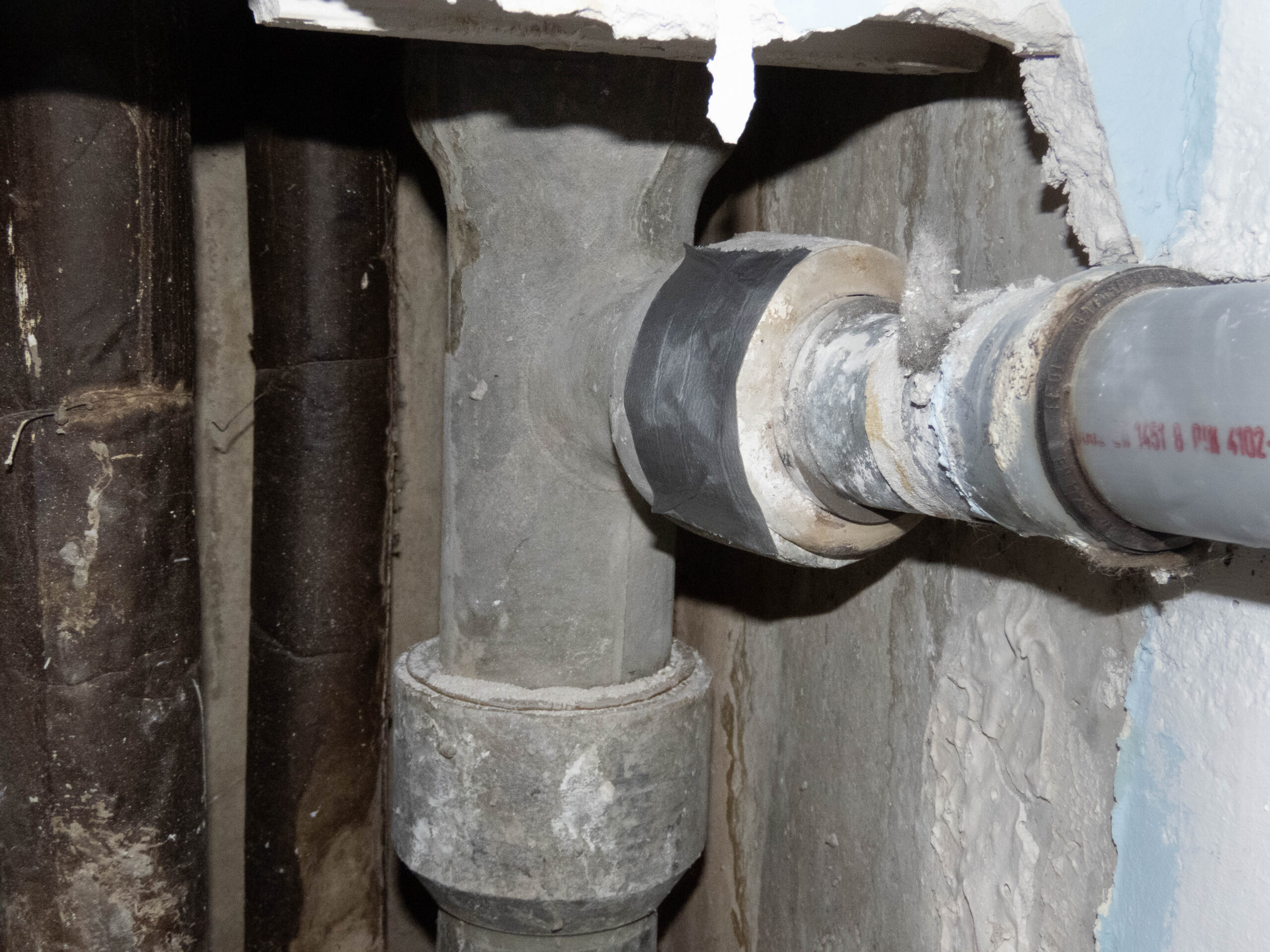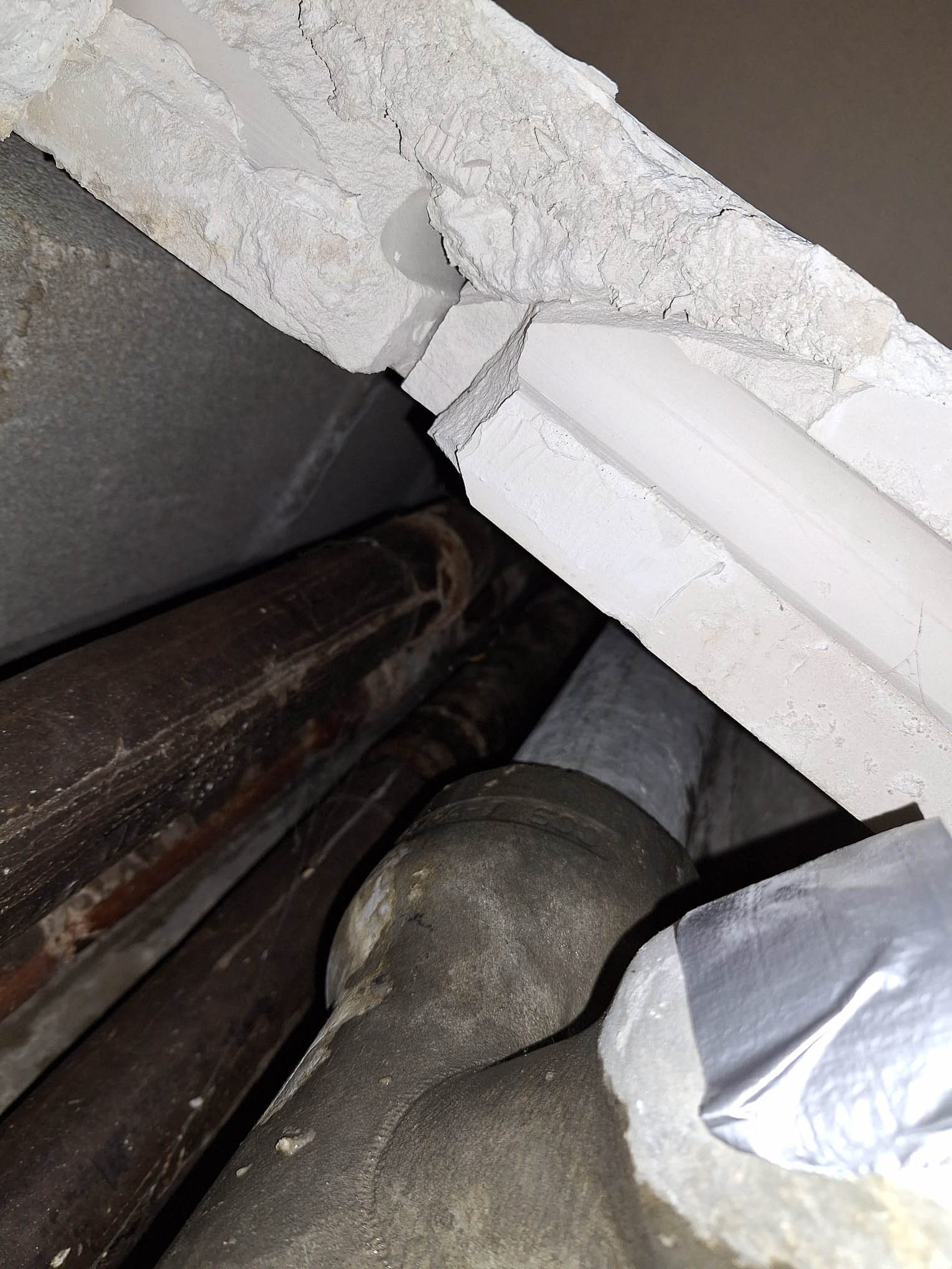 Die Rohre enthalten üblicherweise Asbest. Hätte ein Rohr ein Leck, wovon erst ausgegangen worden war, wäre das eine extrem teurere Angelegenheit geworden, da dann die Reparatur mit Einhausung und Unterdruck hätte erfolgen müssen. Der Kostenrahmen kann dann im Bereich von etwa 10.000 und 20.000 Euro liegen.