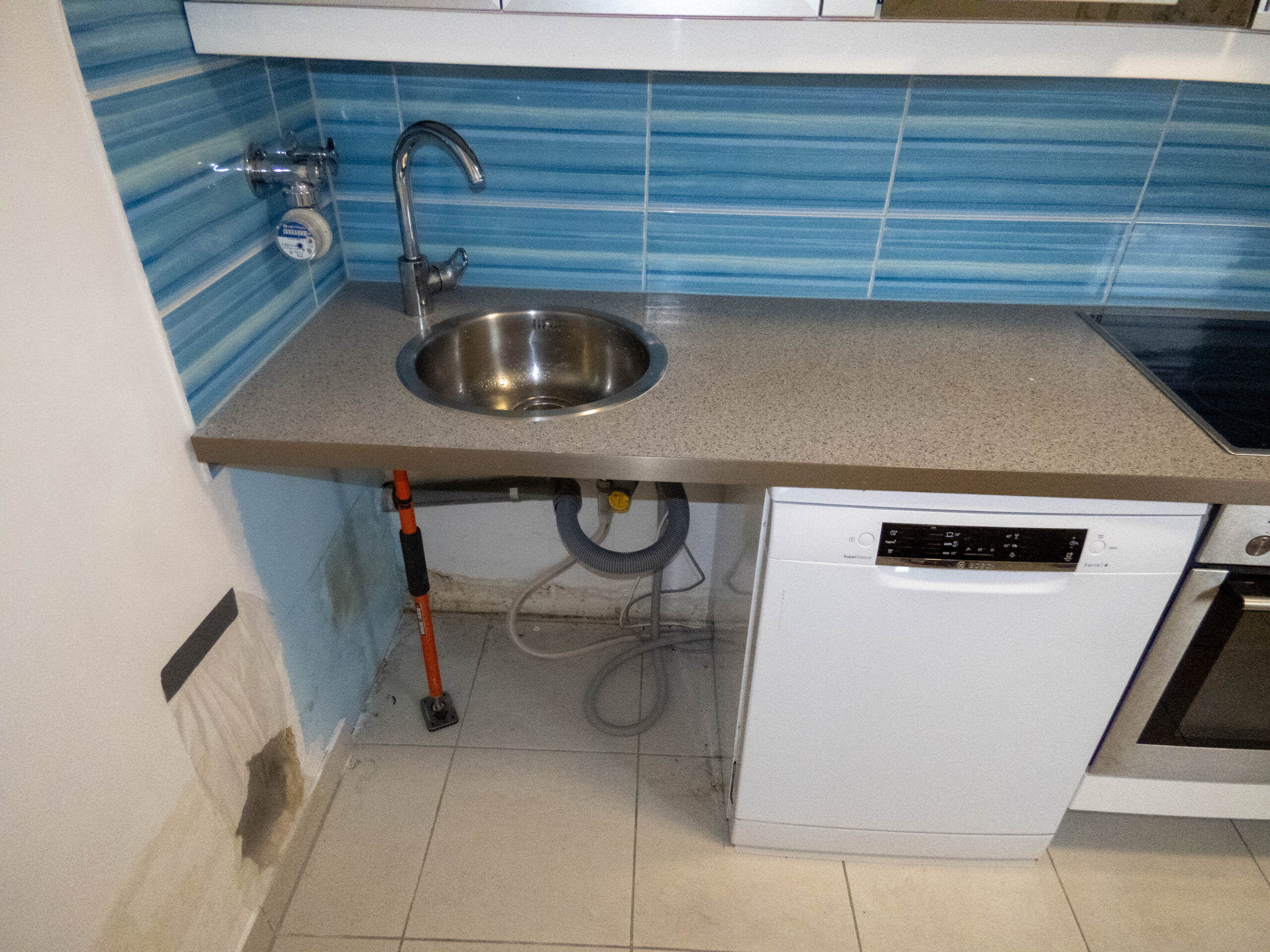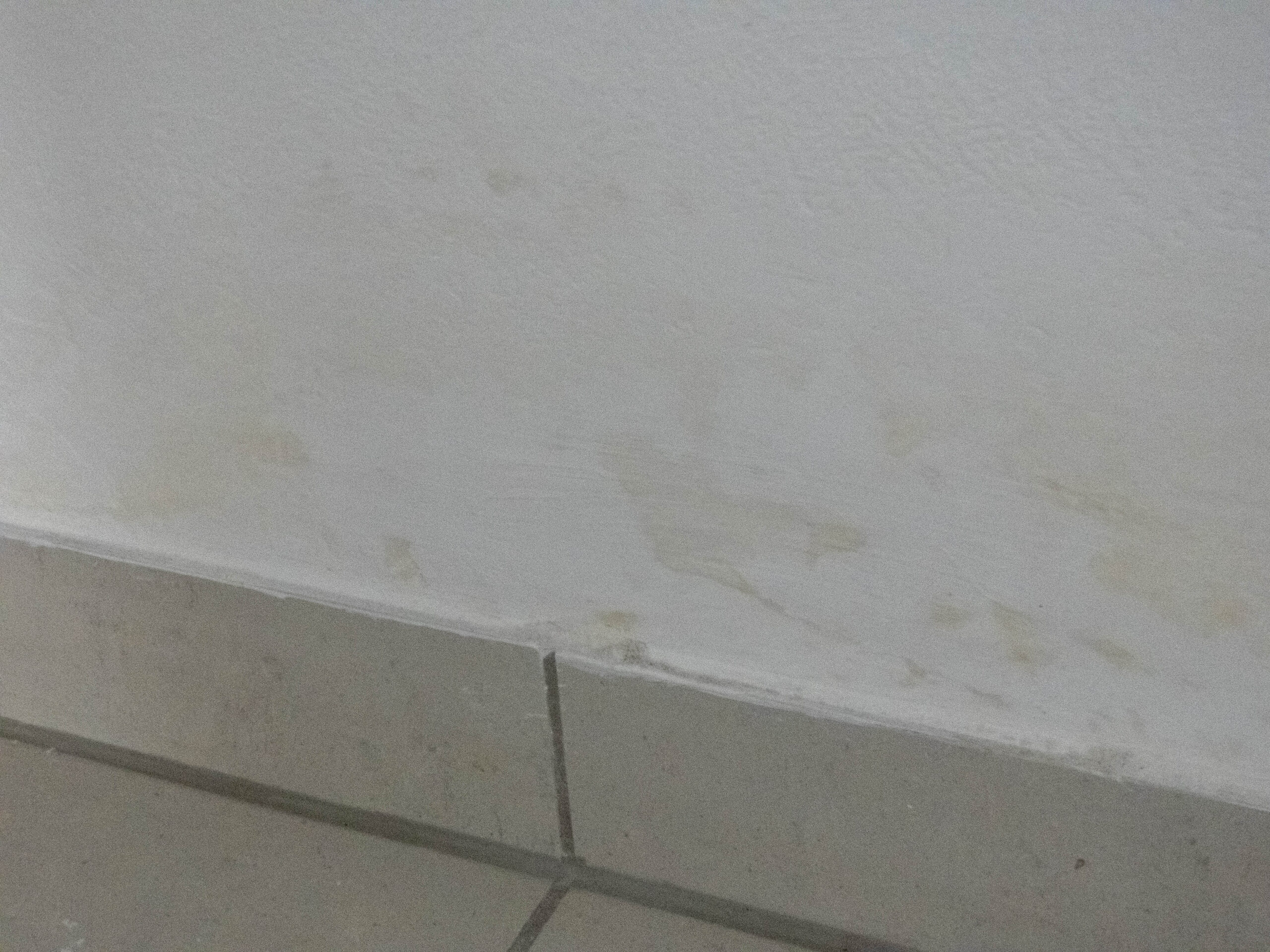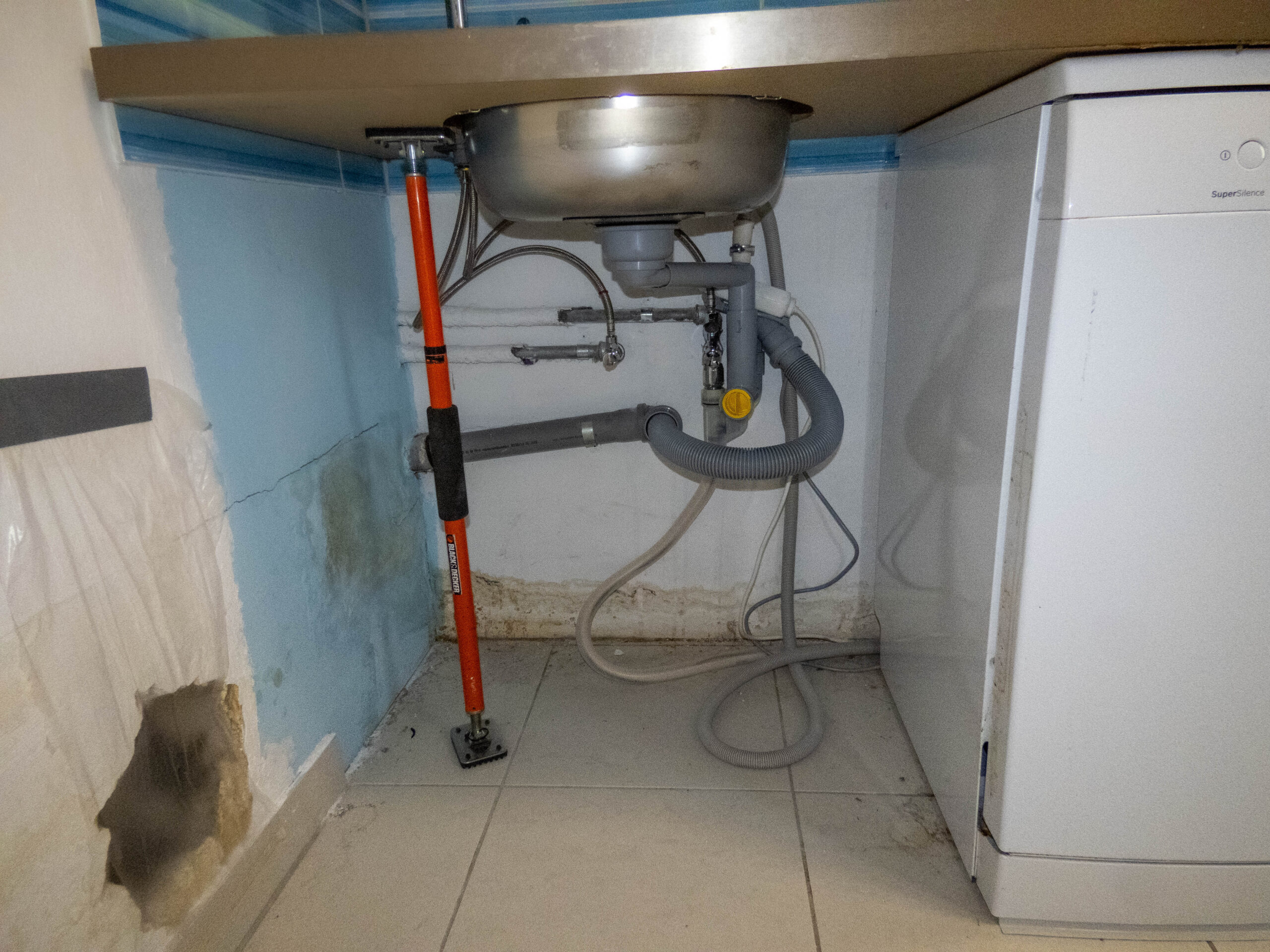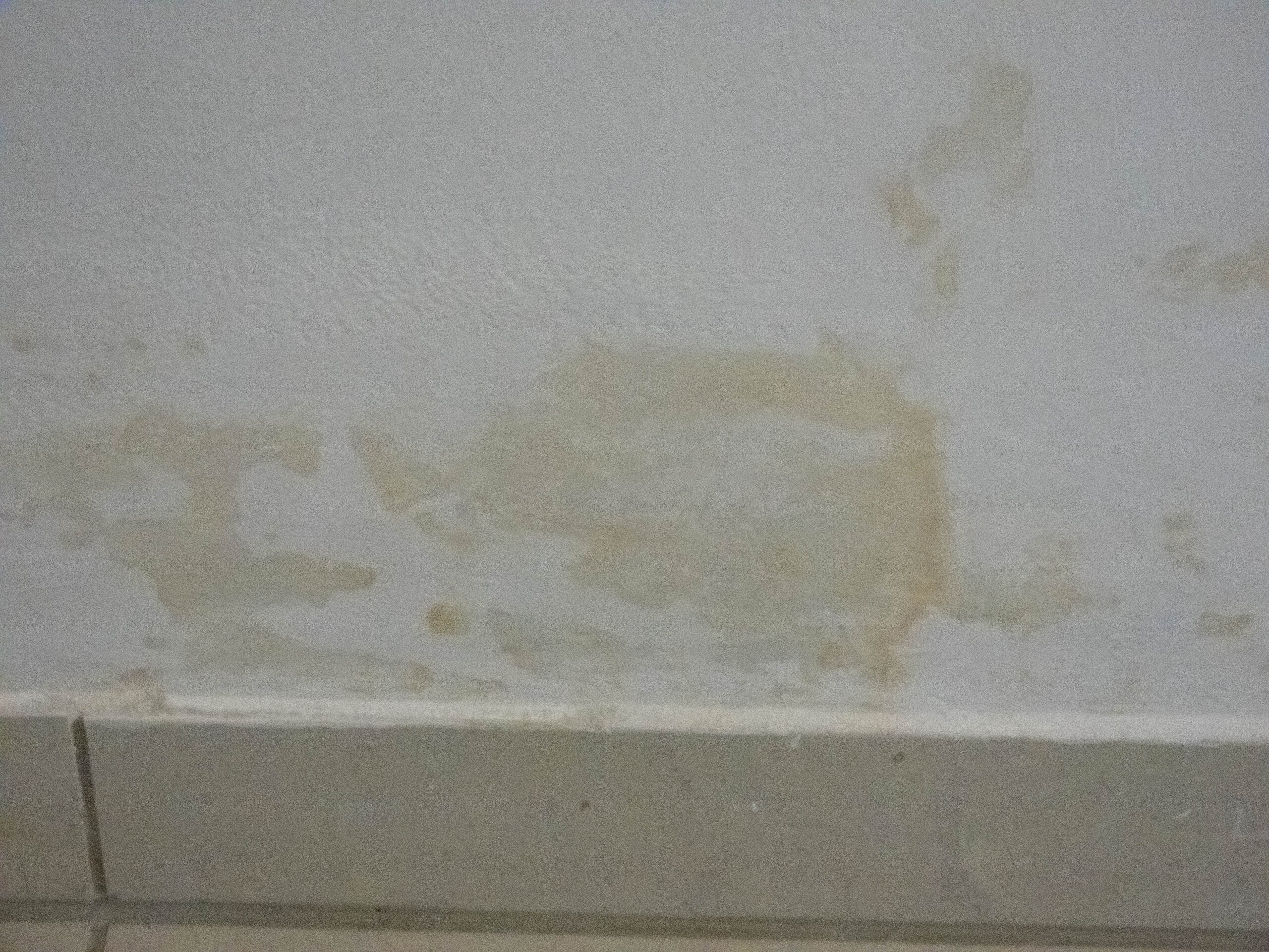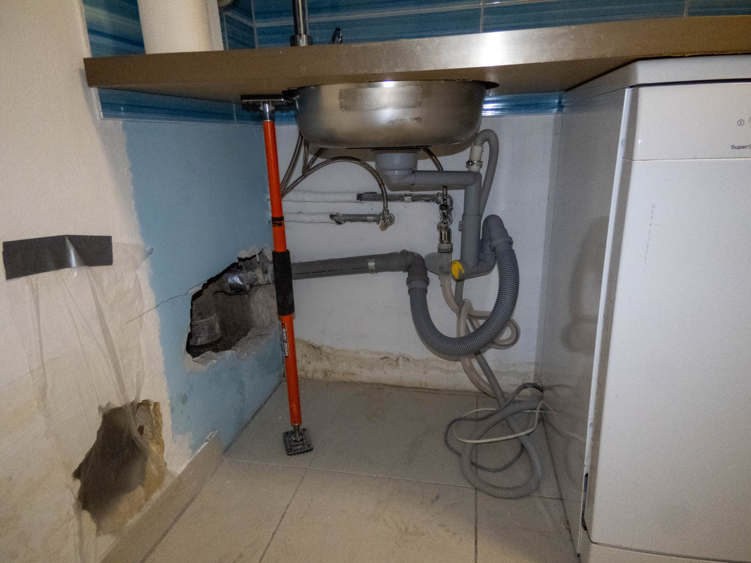 Am 02.10.2024 bemerke ich sehr deutliche Wasserflecken an meiner Küchenwand und informiere die Hausverwaltung, die ein Ortungsteam zu mir schickt. Dieses haut ein großes Loch in die Wand, traf aber die falsche Stelle. Der Spülschrank ist im Weg. Nach dessen Ausbau wird ein weiteres Loch in die Wand geschlagen. Nun kommt man zu dem Ergebnis, dass »wahrscheinlich« die Muffe im Abflussrohr undicht sei. Ich verzichte ab sofort darauf, weiter Wasser in der Küche abzulassen. Doch einige Tage später stelle ich fest, dass im Schacht Wasser von oben herabläuft. Die Vermutung: Das Dach hat ein Leck, was eine spätere Ortung auch bestätigt. Das Dach wurde geflickt, aber man ließ sich bei der Reparatur meiner Küchenwand lange Zeit, obwohl ich oft nachhakte und auch Beiräte einschaltet.